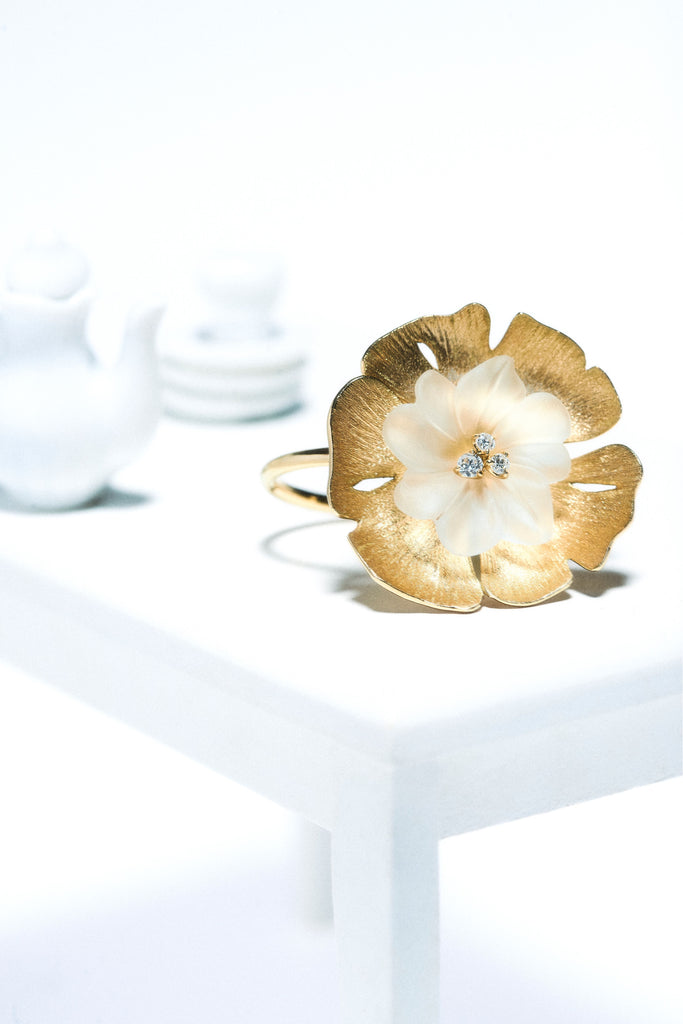 Bague Ginkgo Cristal - Or Jaune