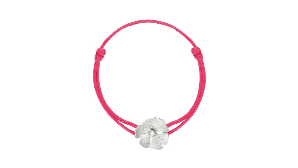 Trois feuilles de ginkgo aux reflets argentés se déploient pour donner vie à une fleur nouvelle, symbole d'espoir et de résilience. Ses pétales texturés à la main s'ouvrent sur un diamant lumineux. Noué d'un cordon décliné en 5 coloris, découvrez le Bracelet Blossom et rejoignez la communauté audacieuse et engagée des femmes Vever .