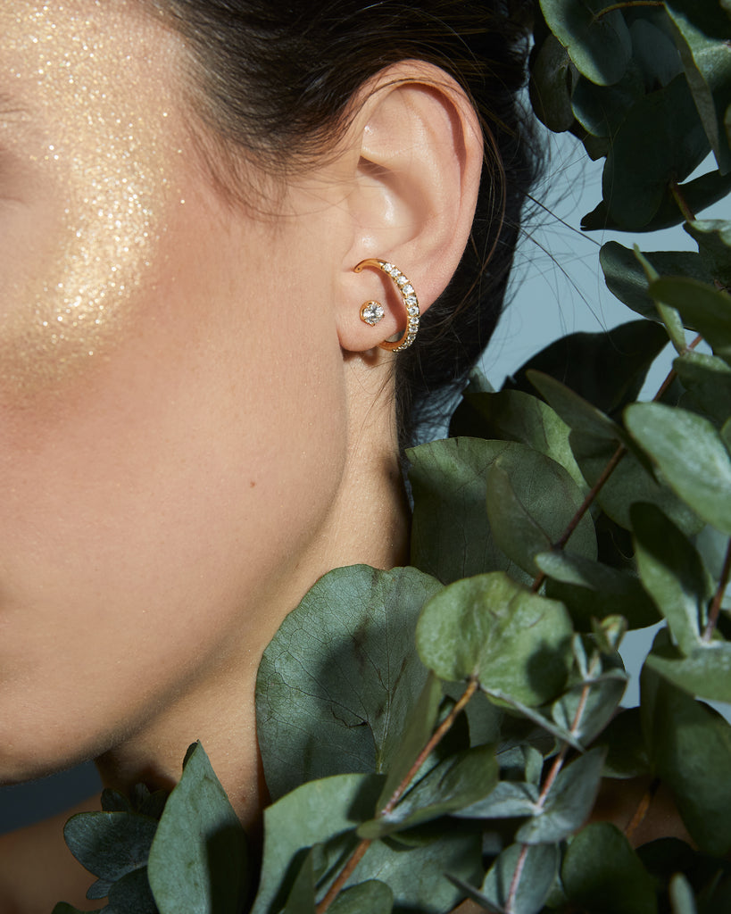 L'audace et la sensualité d'une tige pavée qui serpente autour du lobe. A porter en paire, ou à compléter avec une mono boucle d'oreille Elixir sur l'autre oreille. Boucle d'oreille vendue à l'unité.