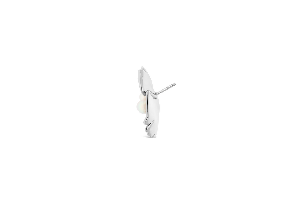 Trois feuilles de Ginkgo se déploient en corolle pour donner vie à une fleur nouvelle. Ses pétales de nacre au blanc lumineux révèlent des reflets irisés chatoyants. En son cœur, 3 perles d'Akoya éclosent élégamment.