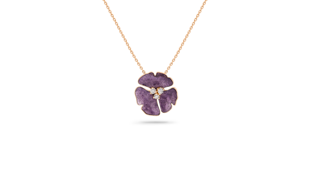 Collier Ginkgo Pavée 3 Fleurs - Or Blanc
