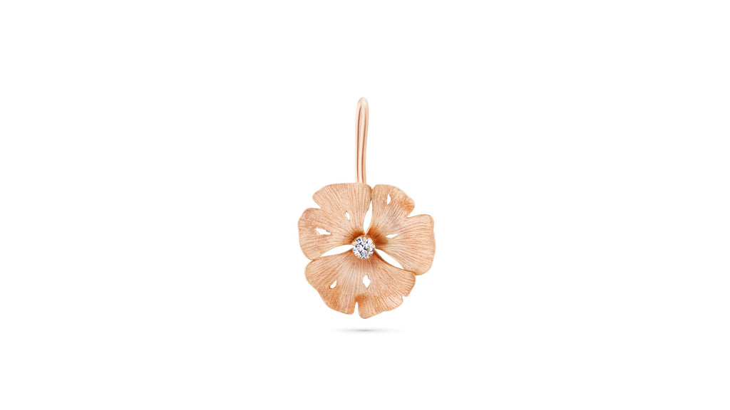 Trois feuilles de Ginkgo se déploient en corolle pour donner vie à une fleur nouvelle. Sa surface satinée joue avec les reflets de lumière. Vendue à l'unité, à porter en paire ou dépareillée.