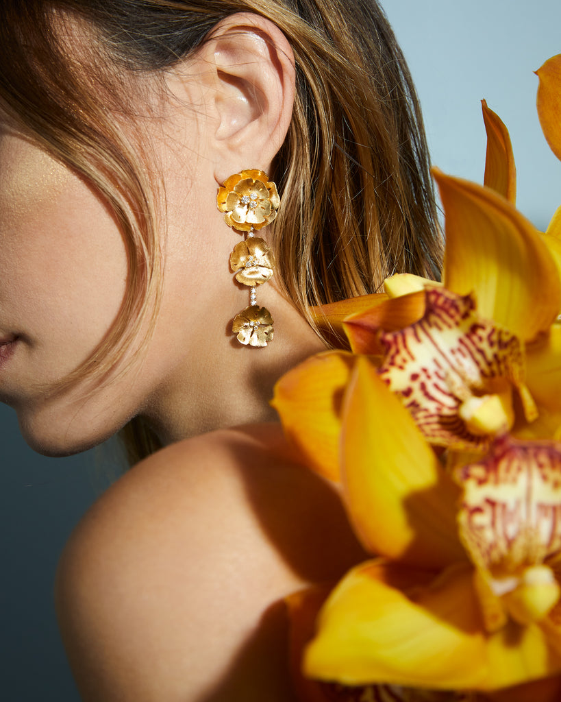 Transformable, cette boucle peut se porter de 2 manières : les 2 fleurs du bas se détachent, afin de porter une seule fleur pour un look plus sobre. Vendue à l'unité, à porter en paire ou dépareillée.