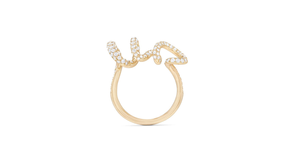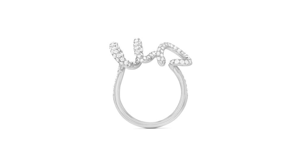 Une liane végétale parée de diamants s’élance sur le doigt, exaltée par un tourbillon d’amour éblouissant.