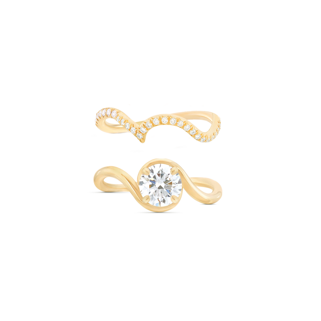A fine gold vine sparkles and undulates on the finger. It marries the Embrace ring in perfect harmony.